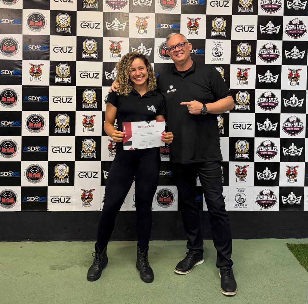 Um dos grandes destaques do curso foi a presença da atleta Jeisla Chaves, da equipe Gomes Fight. Natural de Poções (BA), Jeisla vive um momento de ascensão meteórica: após iniciar como ring girl, ela conquistou seu espaço no UFC através do DWCS 2025.